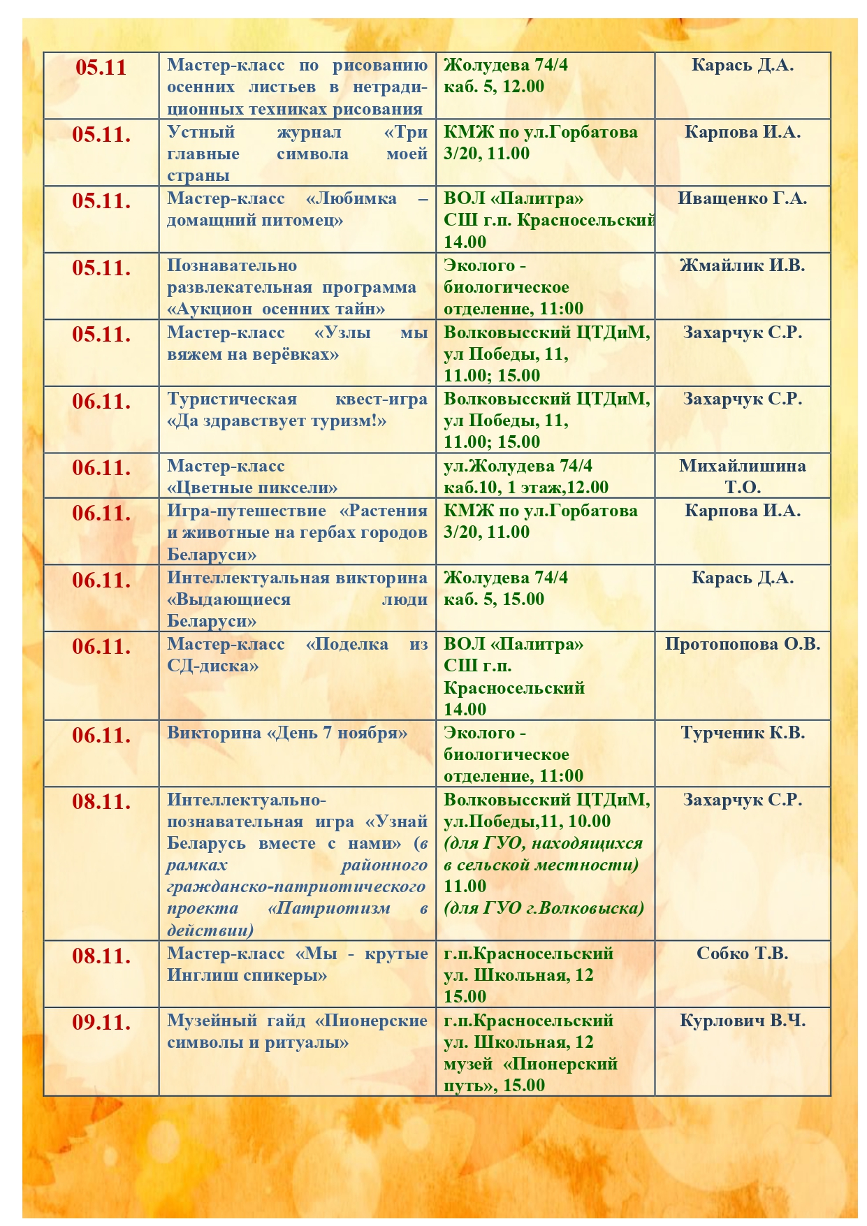 Анонс мероприятий субботнего дня