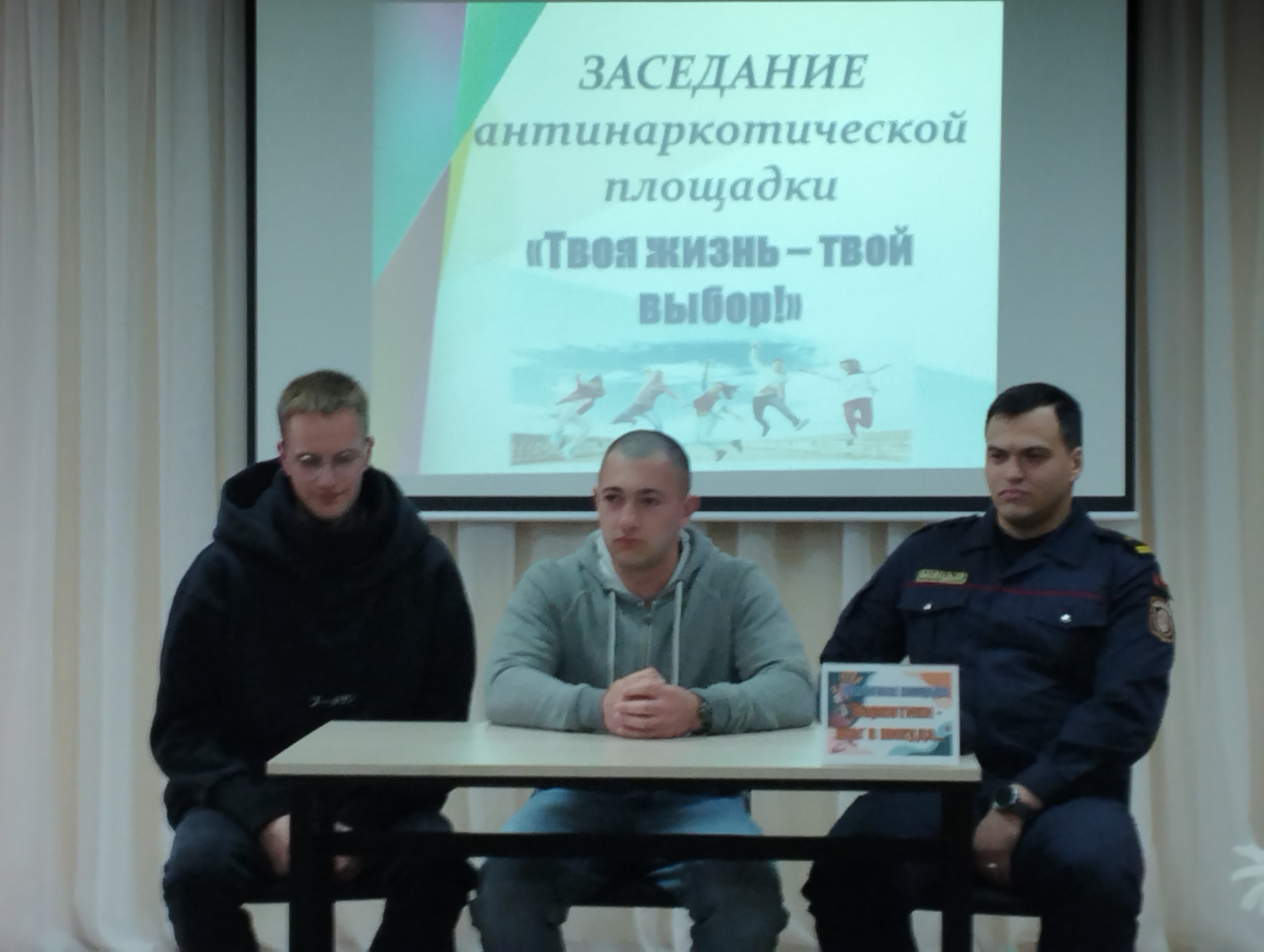 10 октября в рамках заседания антинаркотической площадки «Твоя жизнь – твой выбор!» члены антинаркотических отрядов приняли участие в диалоговой площадке «Наркотики – путь в никуда…» с лицами, отбывающими наказание за употребление наркотических средств исправительного учреждения открытого типа №29 г.Волковыска.