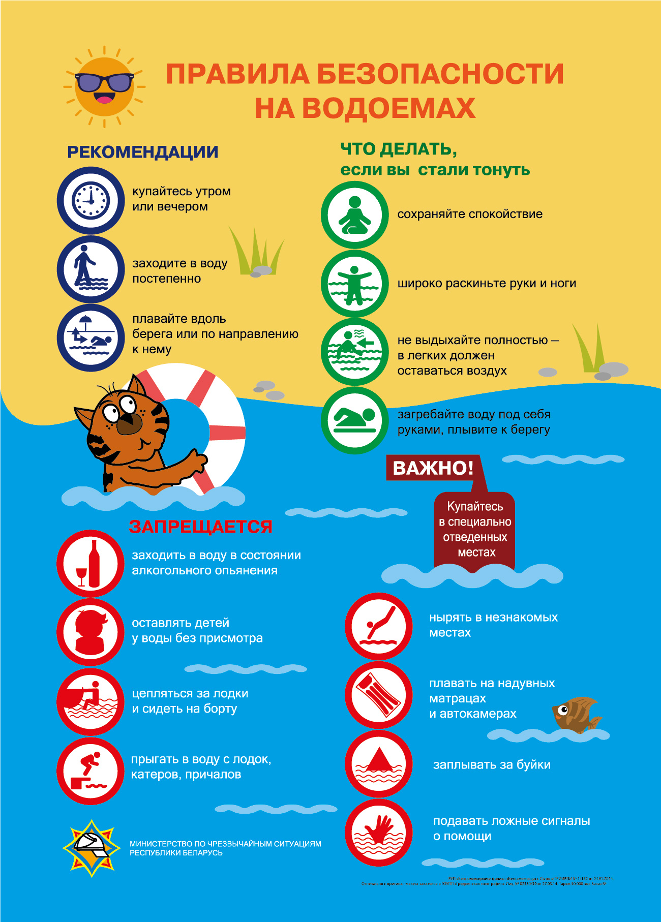 4. Купание у воды. Купайтесь только в специально оборудованных местах, где дежурят спасатели. Исключите употребления алкоголя у воды.