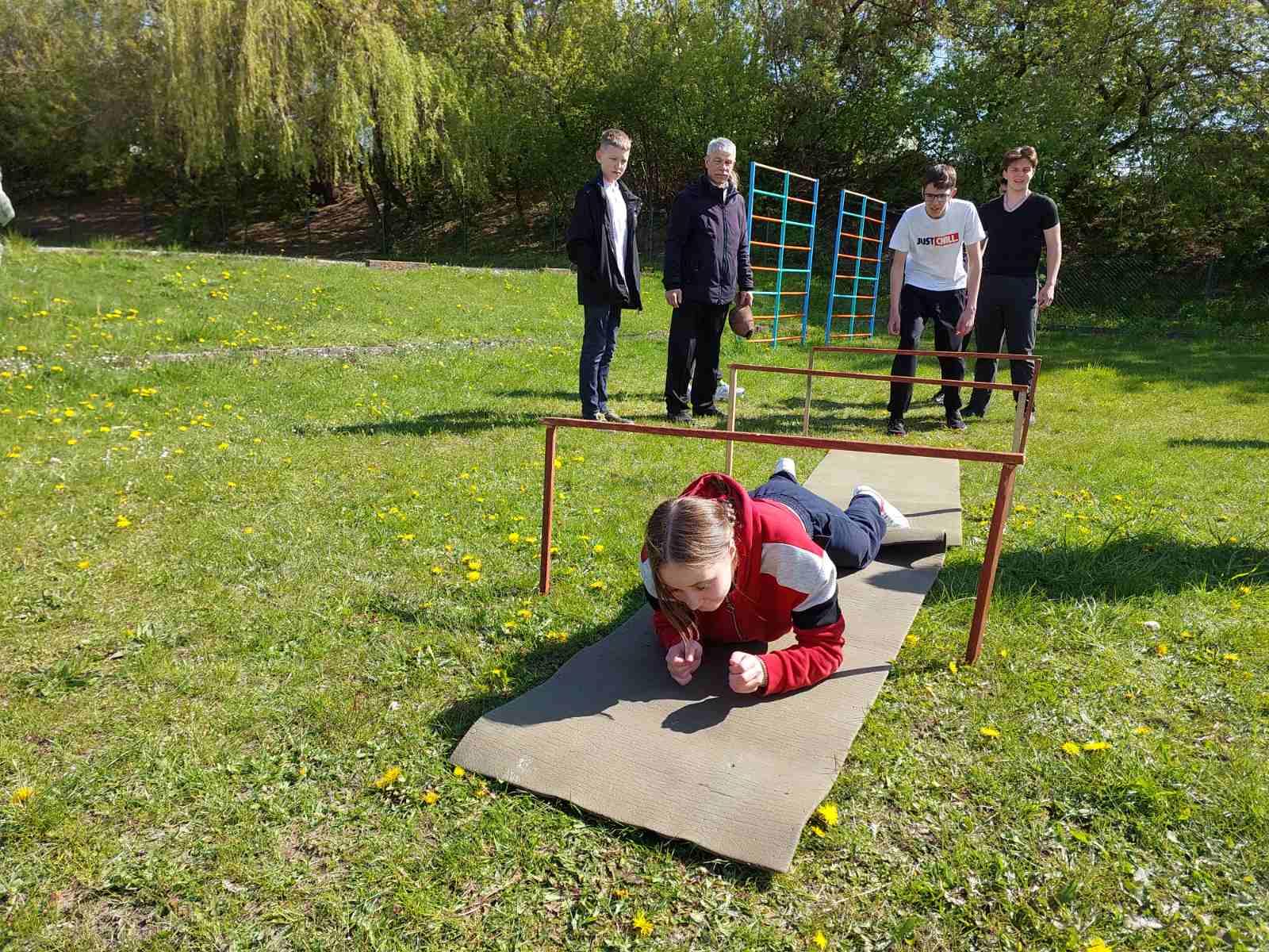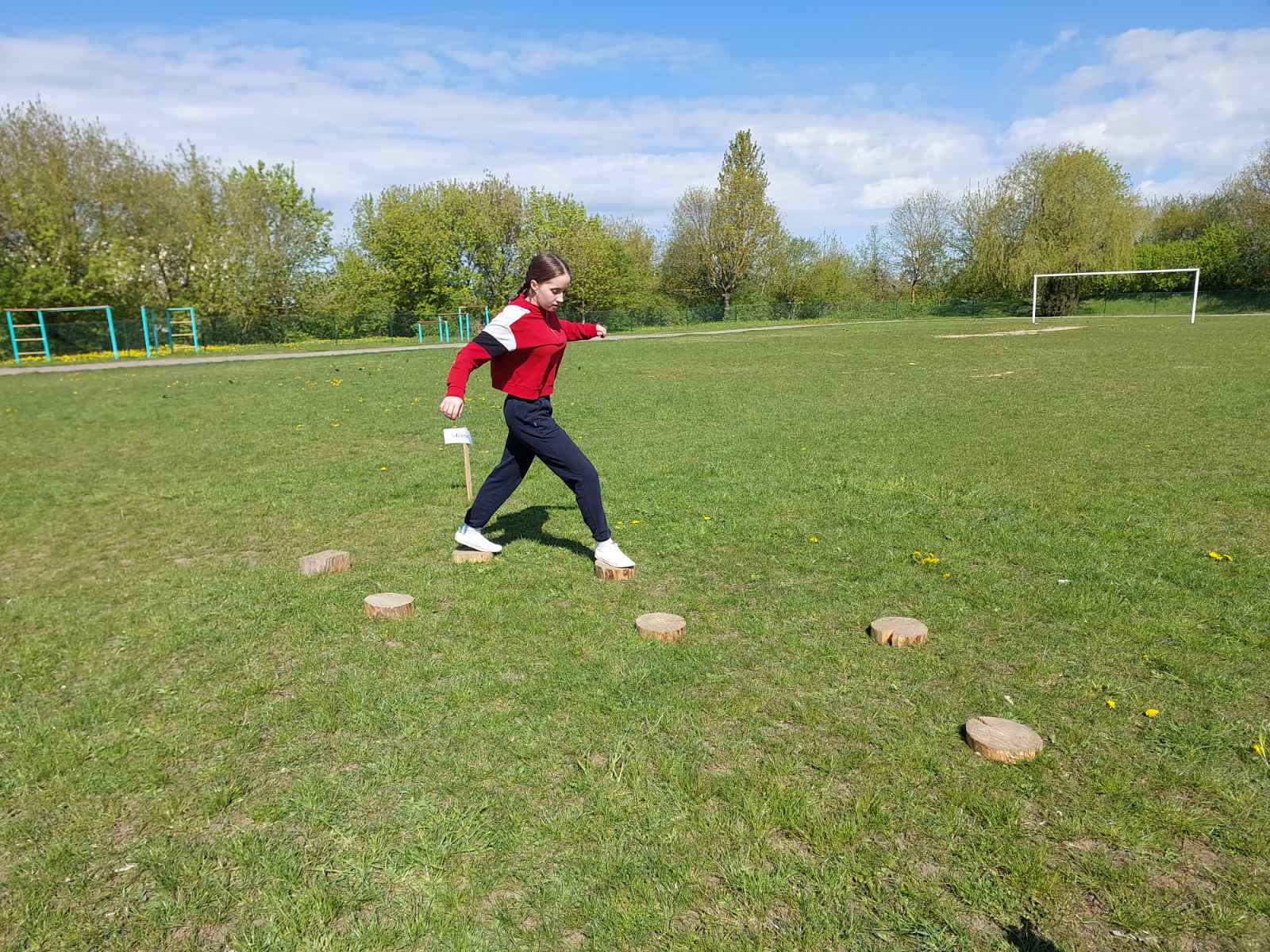 полоса препятствий: «Параллельные веревки», «Переправа по бревну», «Кочки», «Поводырь», «Туннель», «Маятник»;